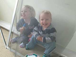 Audrey and Eli were enthralled. It was a really well put together show and the presenters hung around after the show to meet the awe-struck kids. As is the way with these things the merchandise table at the back took us for $30 for a Big Ted and $20 for a couple of Play School plates. Personally I'm sure any yellow teddy would have sufficied but even at 3 Audrey is wise enough to know the difference. Big Ted is now toy no.1, probably until next week sometime when something else catches her eye and both Audrey and Eli have taken to sweeping their food off the plates to see the picture of Jemima et al underneath. Still, it's a small price to pay for a good morning's entertainment!