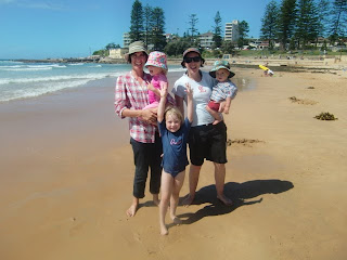 It was great to see them all. The kids all got along really well (Audrey and Ted particularly so!) and we spent Sunday at Dee Why beach which was very relaxing. Audrey paddled and Eli nearly lost his hat in the waves. It's a bit corny to say that children 'grow up so quickly' but they really do. Hopefully we'll see them all again before too long. Thanks for such a nice time.